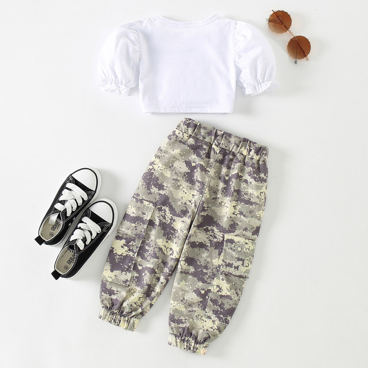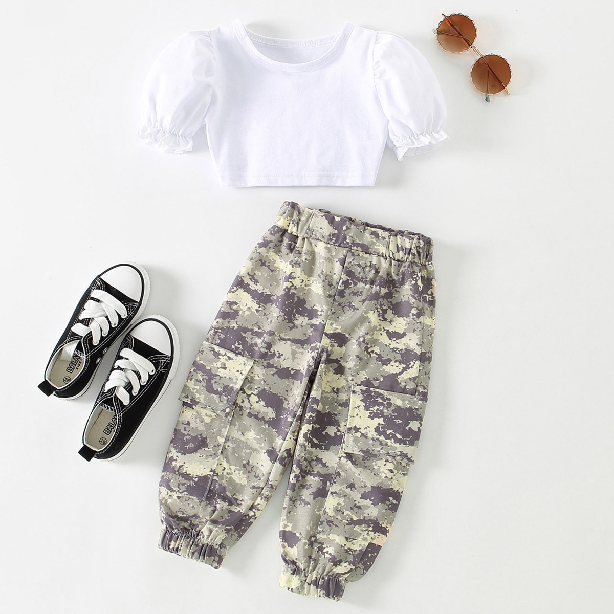 Toddler Girl Casual Cool Camouflage T-shirt & Overalls Wholesale