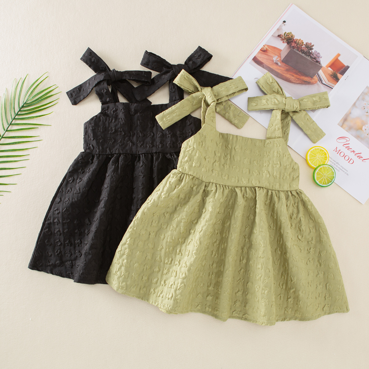Toddler Girl Cute Solid Color Bow Knot Decor Dress Wholesale