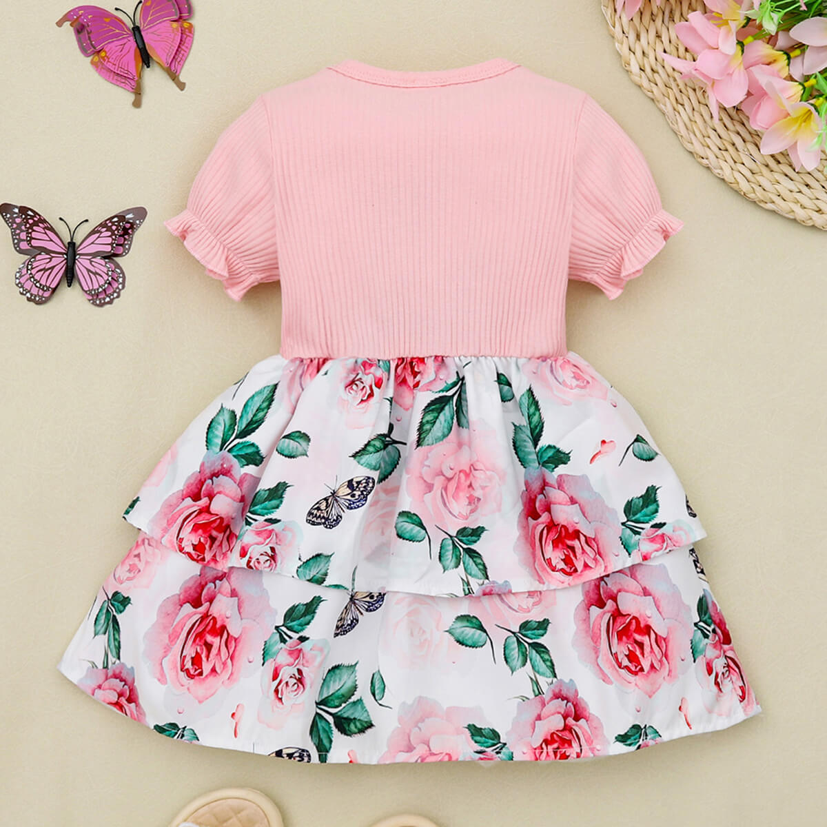 Toddler Girl Sweet Floral Bow Knot Decor Dress Wholesale